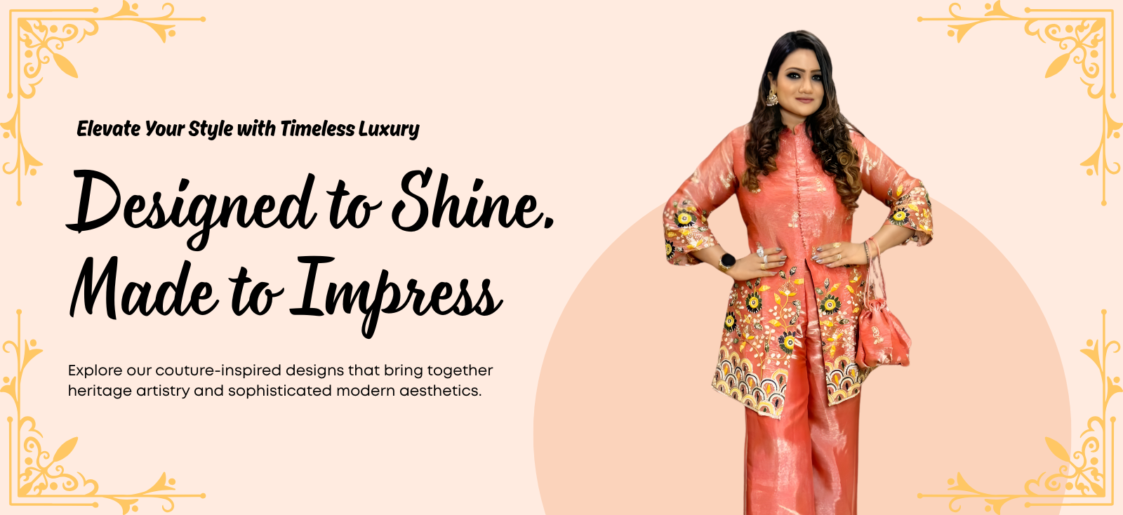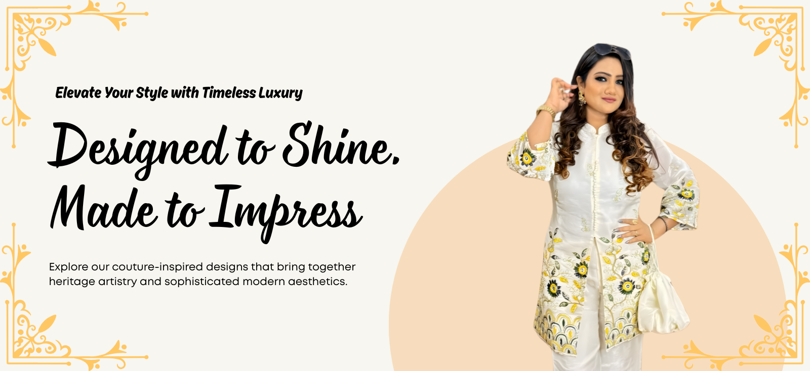 Explore our couture-inspired designs that bring together heritage artistry and sophisticated modern aesthetics.